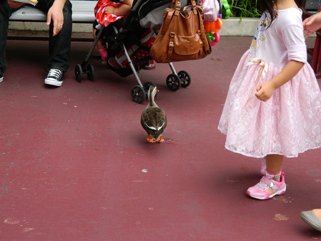到處可以看到鴨子或鴿子在路上討東西吃